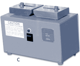 C. Part No. MAG24C Will Magnetize Alnico 5 up to 2" x 3" long and Ceramic 5 up to 2" x 2-1/2" long. Typically used to magnetize alnico. Connects to standard 120 VAC (50/60 Cycles, 14 Amps) outlet. Adjust tapered pole shoes (up to 4" gap) to fit magnet length. Place magnet or assembly between poles and depress switch for one second. Repeating the cycle does not increase magnetization. |